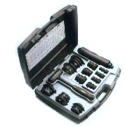 การติดตั้งตลับลูกปืนที่ไม่ถูกวิธี เช่น ใช้แรงตอกอัดอย่างรุนแรง เป็นสาเหตุให้เกดปัญหาตลับลูกปืนเสียหายก่อนกำหนดกว่า 16% อุปกรณ์ตอกใส่ตลับลูกปืนของ SKF รุ่น TMFT 36 ได้รับการออกแบบสำหรับการติดตังที่รวดเร็วและแม่นยำ ในขณะที่ป้องกันความเสียหายต่อตลับลูกปืน แหวนกระแทกทีเข้าคู่กับปลอกจะส่งแรงผ่านไปยังแหวนตลับลูกปืนที่สวมแน่น ป้องกันความเสียหายที่อาจเกิดขึ้นกับรางวิ่งและเม็ดลูกกลิ้ง ชุดอุปกรณ์ประกอบด้วยแหวนกระแทก 36 วง ปลอกส่งแรง 3 ชิ้น และค้อนยาง บรรจุรวมกันในกระเป๋าหิ้วน้ำหนักเบา นอกจากใช้งานกับตลับลูกปืนแล้ว อุปกรณ์ TMFT 36 ยังเหมาะสมกับชิ้นงานอย่างอื่น เช่น บุช ซีล และมู่เล่ย์ |